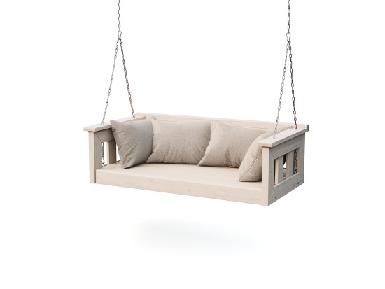 Keinun vakioleveys on 120cm ja se on tarkoitettu 2:lle henkilölle. Lisävalintana voit valita 160cm keinun ja siihen sopii istumaan 3 henkilöä. Kuvan tyynyt eivät sisälly toimitukseen.