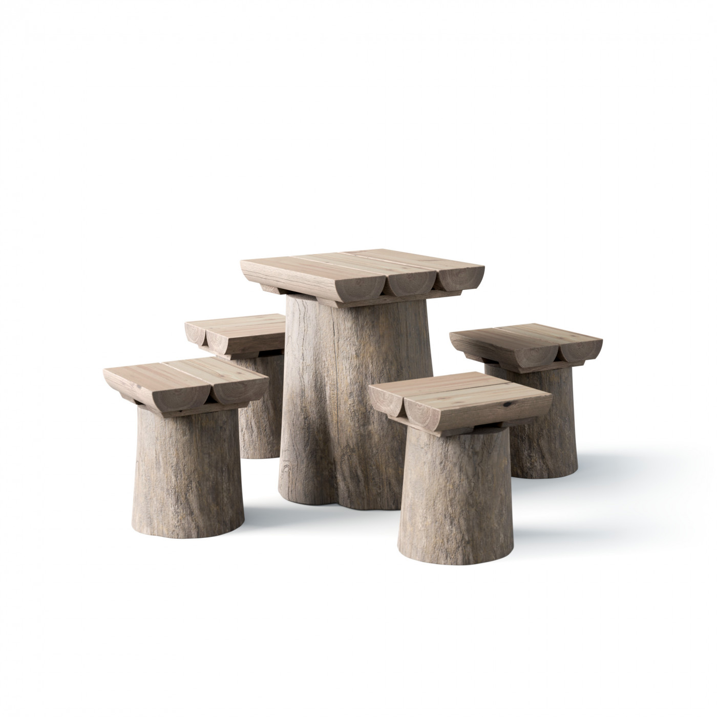 Tästä pihallesi upea kahvipöytäsetti, joka koostuu Pölli hirsipöydästä ja 4 kanto hirsituolista. Valmistetaan valikoiduista kotimaisista mäntytukeista.