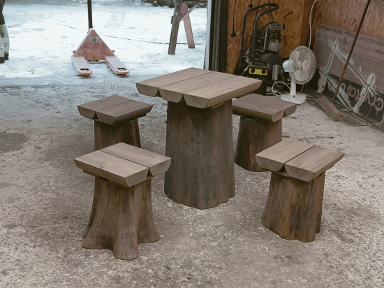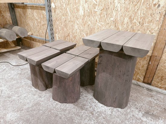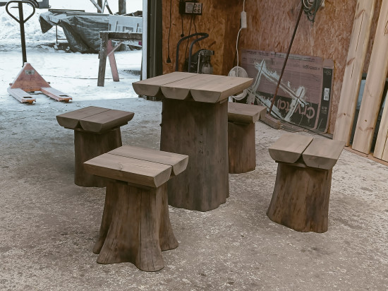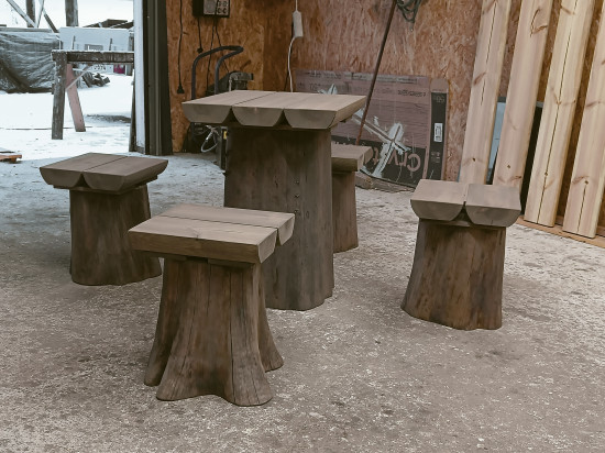 Etusivu ❯ Tuotteet ❯ Ulkokalusteet ❯ Hirsipöydät ja -ryhmät ❯ Pölli hirsikaluste