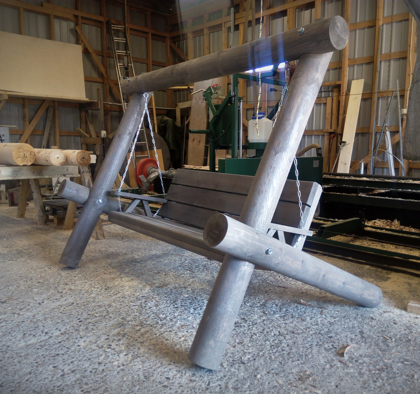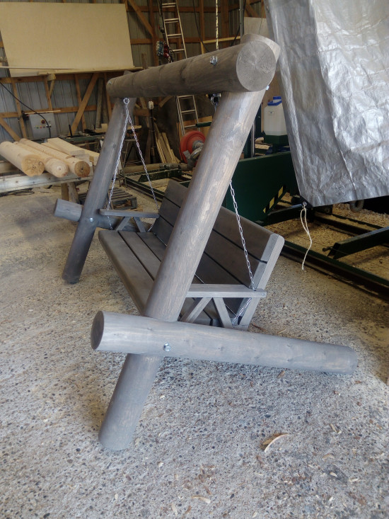 Etusivu ❯ Tuotteet ❯ Ulkokalusteet ❯ Hirsikeinut ❯ Pyöröhirsi pihakeinu, jenkkityylisellä istuinosalla