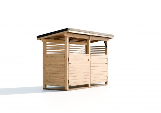 Kahden oven malli sopii erinomaisesti esimerkiksi paritaloihin tai taloyhtiöiden pihoille. Jätekatoksesta tulee myös samalla erittäin siisti kun saat jäteastiat ovien taakse piiloon.